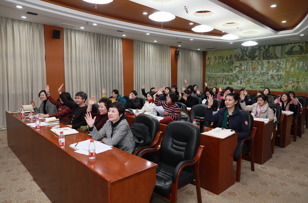 会议举手表决通过了第六届女教授协会理事会成员和常务理事会成员建议名单。校党委常委、总会计师张艳丽教授,校工会常务副主席、教代会副主席宋志光,以及第五届女教授协会的理事会成员参加了会议。(摄影:马丹妮)