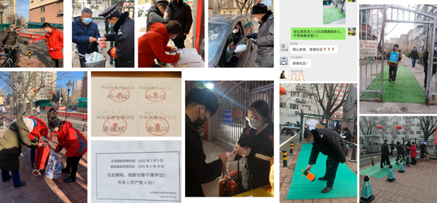民大社区工作者、党员们、物业人员、保安、志愿者坚守防控服务岗位
