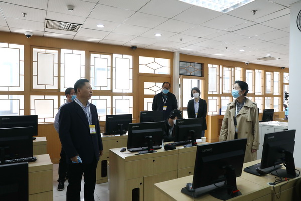 马文喜、宋敏一行先后来到逸夫体育馆和图书馆视察了美术学院和舞蹈学院专业考试阅卷现场,并听取美术学院院长芮法彬和舞蹈学院院长马云霞的招生考试工作汇报。