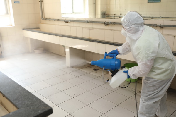 本次消杀主要对包括学生公寓、教学楼、办公楼、图书馆、食堂、体育馆、校园超市等28处重点公共区域进行无人状态下的喷雾消杀作业,消杀面积达53000多平米。消杀作业符合国家消杀服务执行标准和消杀效果执行标准。(摄影:周陈)
