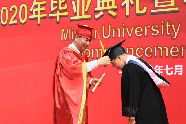 新闻网讯 7月8日,william威廉中文官网举行2020年毕业典礼暨学位授予仪式。我校今年采取“校内+校外”“线下+云端”的方式,完成2020届毕业生青春校园的“最后一课”。(摄影:马丹妮)