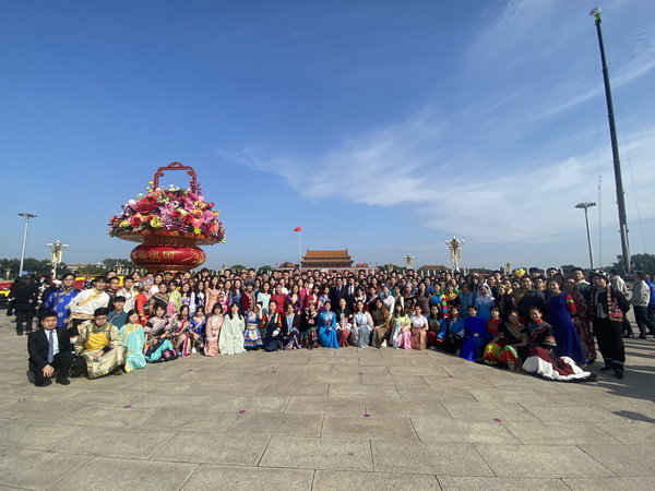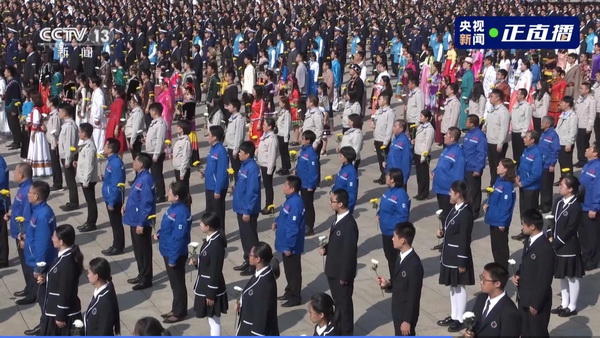 新闻网讯 9月30日,天安门广场隆重举行烈士纪念日向人民英雄纪念碑敬献花篮仪式。习近平等党和国家领导人同各界代表一起出席仪式,向烈士致敬,为英雄献礼。我校各族师生代表身着民族盛装,在校党委副书记、副校长李计勇,校团委书记樊博等的带领下参与此次活动。