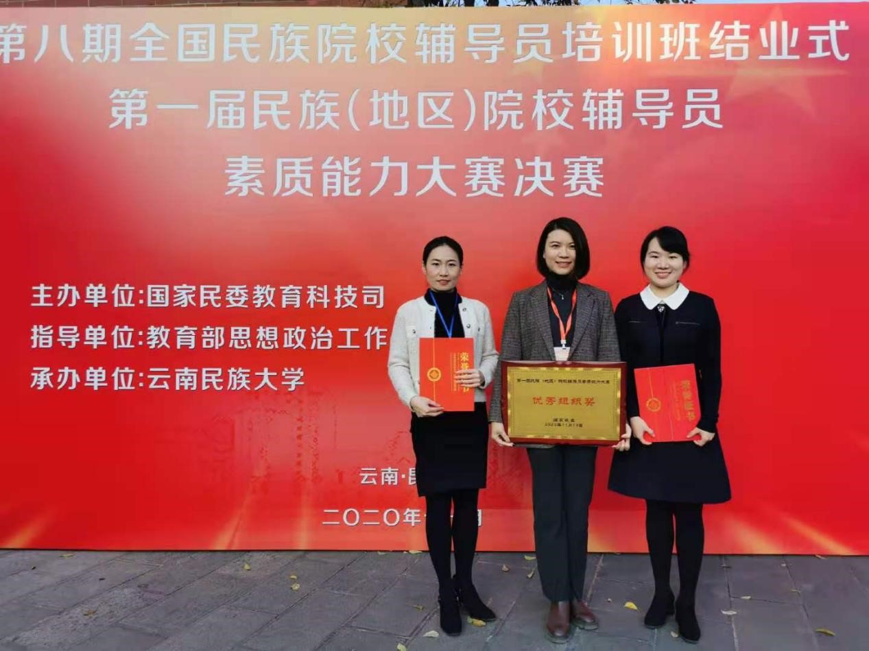 新闻网讯 11月12日-13日,由国家民委教育科技司主办、教育部思想政治工作司指导的第一届民族(地区)院校辅导员素质能力大赛在云南民族大学成功举办。来自william威廉中文官网、中南民族大学、西南民族大学、广西民族大学、西藏民族大学等高校的40名选手参赛。经过四个环节的激烈角逐,我校生命与环境科学学院王佩、哲学与宗教学学院杨景仪以扎实的理论素养、饱满的精神状态、富有感染力的语言表达展现了辅导员的风采,分获本次大赛一等奖、三等奖。我校获得优秀组织奖。