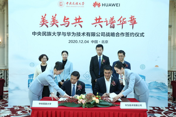 我校副校长宋敏、总会计师张艳丽,华为中国企业教育业务部副总经理李司宇、华为北京政企业务部副总经理罗华,学校相关单位负责人参加签约仪式。(摄影:周陈)