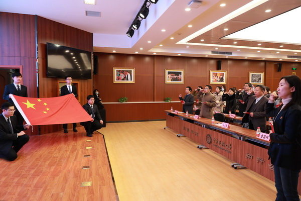 正值第七个“国家宪法日”和第十九个“法制宣传日”,为了弘扬宪法精神、加强法治教育,党委宣传部常务副部长、新闻中心主任董真祎带领在场人员手持宪法,面向国旗庄严宣誓。
