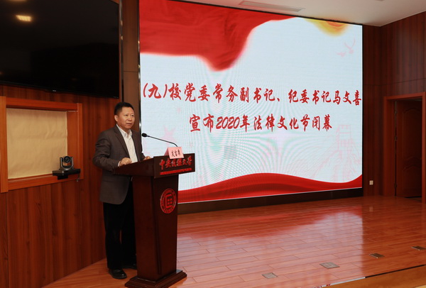 闭幕式上,马文喜为2020年法律文化节竞赛类活动获奖代表颁发证书并发表讲话。他指出,《民法典》的颁布和习近平法治思想在中央全面依法治国工作会议上的首次提出和系统阐释,对于国家社会生活和法律界具有重要意义。他希望明年的法律文化节能够继续发挥法治宣传教育功能,贯彻习近平法治思想,让习近平新时代中国特色社会主义思想在全校得到更好宣传和贯彻落实。