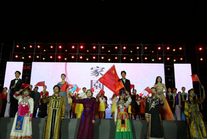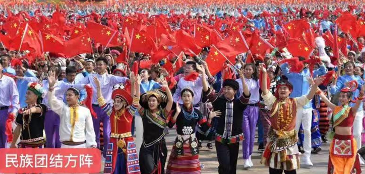国庆70周年庆祝活动中参加民族团结方阵的各族学生