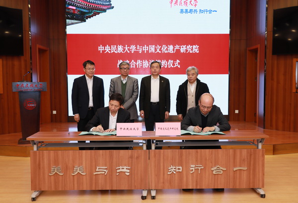 中国文化遗产研究院、中国国家博物馆、故宫博物院、中科院古脊椎动物与古人类研究所、北京大学、中国人民大学、首都师范大学等有关研究人员和我校相关职能部门、民族学与社会学学院、铸牢中华民族共同体意识研究基地等人员参加签约仪式。