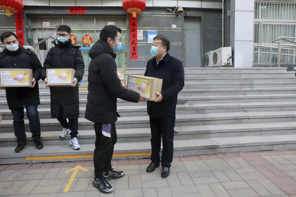 “同学你老家是哪里的呀?”“假期有什么安排吗?”刘林关切地问起留校学生的学习、生活情况。他代表北京市青年联合会向留校学生赠送了春节大礼包,希望大家能合理利用时间,努力学习、勤奋读书、善于思考。他还向留校学生以及他们的家人拜年,祝愿家人身体健康、阖家幸福,祝愿同学们学业有成、鹏程万里。
