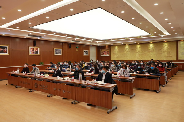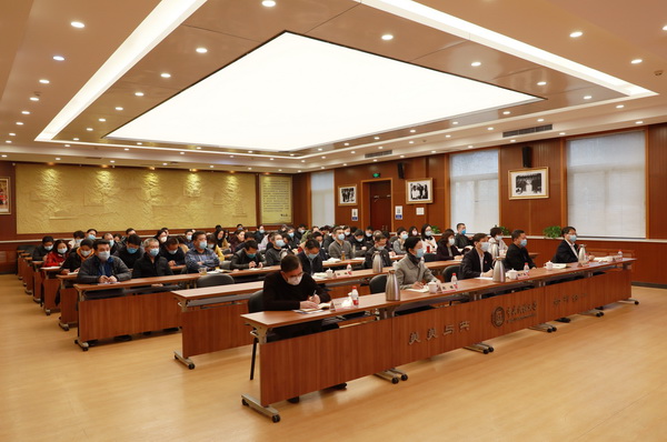 会议以视频形式召开。我校校领导班子成员,校长助理,各二级单位党组织书记以及各职能部门、校属单位主要负责人在学校知行堂分会场以视频形式参会。(摄影:马丹妮)
