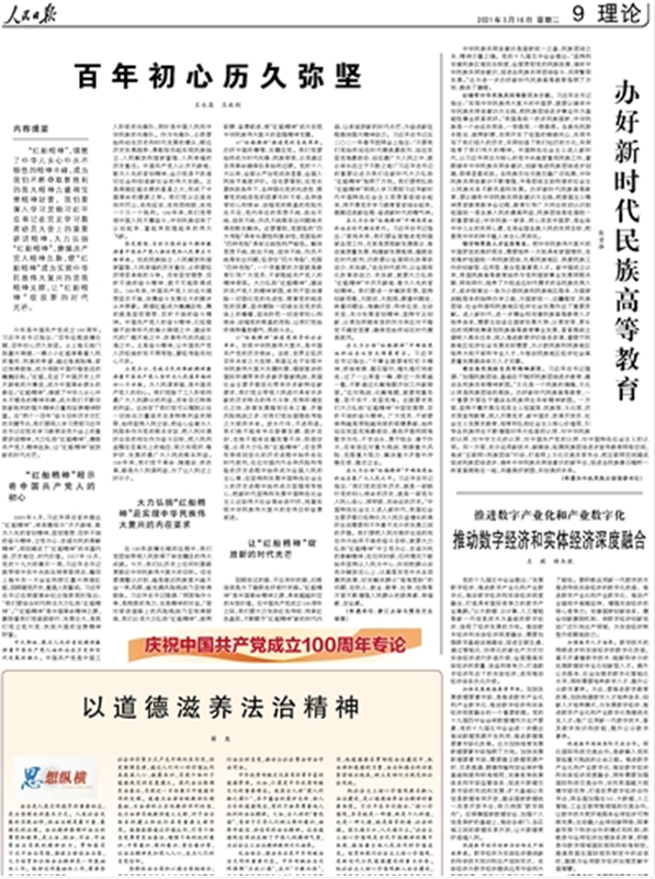 新闻网讯 3月16日,《人民日报》理论版刊登我校党委书记张京泽署名文章《办好新时代民族高等教育》。文章指出,中华民族共同体意识是国家统一之基、民族团结之本、精神力量之魂。党的十九届五中全会提出:“坚持和完善民族区域自治制度,全面贯彻党的民族政策,铸牢中华民族共同体意识,促进各民族共同团结奋斗、共同繁荣发展。”这为进一步办好新时代民族高等教育指明了方向、提供了遵循。文章强调,我们要以铸牢中华民族共同体意识为主线,健全和完善人才培养体系,建设各民族师生共有精神家园等方面,办好新时代民族高等教育。全文如下: