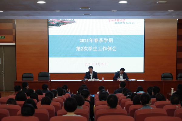 李计勇对春季学期开学以来学生思想政治、日常教育管理等工作进行了回顾总结,对持续不懈抓好常态化校园疫情防控、学生日常教育管理、学生心理健康教育、意识形态安全、维护校园安全稳定和全力做好重大政治活动服务保障工作作了具体安排部署。