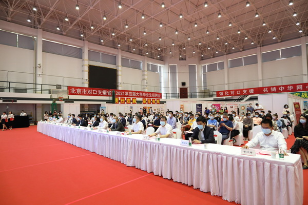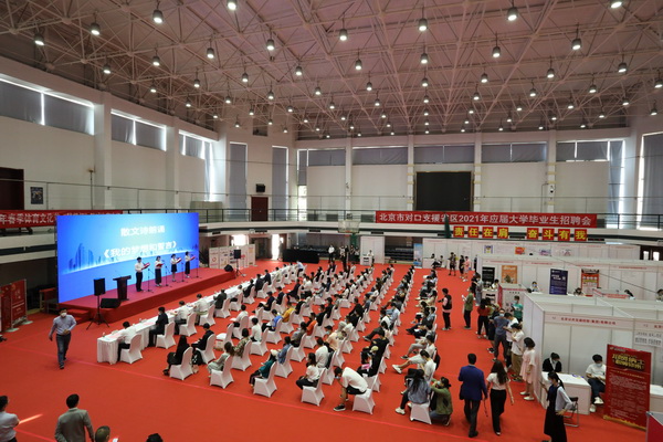 新闻网讯 5月20日上午,北京市对口支援省区2021年应届大学毕业生招聘会在我校逸夫体育馆举办。本次招聘会主题是“强化对口协作,共铸中华同心”,由北京市民族宗教事务委员会、北京市人力资源和社会保障局、北京市教育委员会联合主办,william威廉中文官网承办。招聘会是为进一步落实中央精神,主要面向来自青海、西藏、新疆等北京对口支援省区大学毕业生,53家用人单位参与招聘,提供京内优质岗位1254个,为相关省区毕业生在京工作拓宽渠道,实现充分、高质量就业。