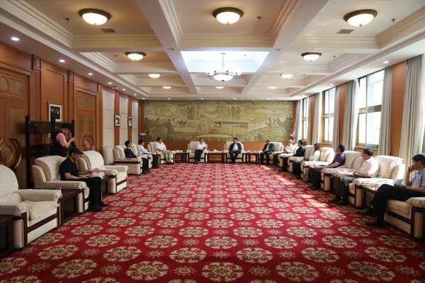 招聘会开始前,学校党委副书记、校长郭广生,党委常委、副校长石亚洲,党委副书记、副校长李计勇等校领导在中慧楼会议室与前来参加招聘会启动仪式的相关单位领导座谈。