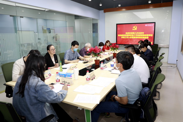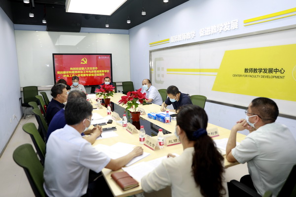 考察组认真查阅我校党建和思想政治工作相关资料,分别与我校党政职能部门负责人代表,教授代表,学院党政负责人代表,党支部书记、党员代表,宣传思想及群团工作负责人代表,青年教师及学生代表进行座谈交流。(摄影: 周陈 马丹妮)