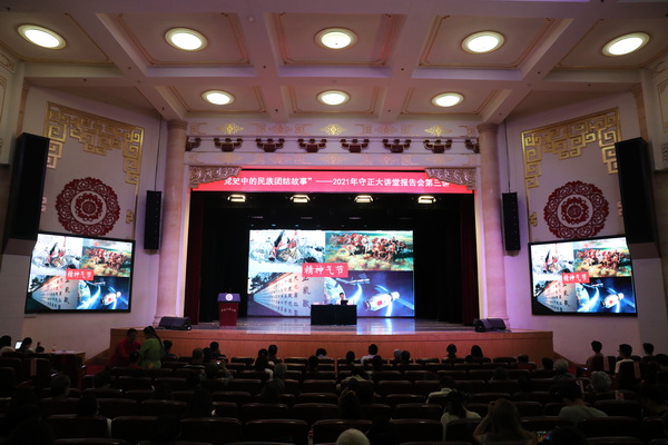 严庆教授结合详实的历史资料、生动的真实故事、具体的调研数据,以“母爱无边”“流动的血肉界碑”“一个民族不能少”“中国共产党万岁”“魂牵梦绕的‘内地班’”五个主题故事为主线,讲述了“党史中的民族团结故事”。现场同学们认真聆听,并与严庆教授进行了互动。同学们纷纷表示,通过报告会,深刻体会到了五十六个民族就像一棵大树下交错的树根,共同扎根在这片中华大地上,是血肉相连的一家人。作为新时代青年,要铸牢中华民族共同体意识,争做民族团结的践行者、促进者和守护者,努力学知识、强本领,做到扎根基层、服务人民,为“中华民族一家亲,同心共筑中国梦”再立新功!