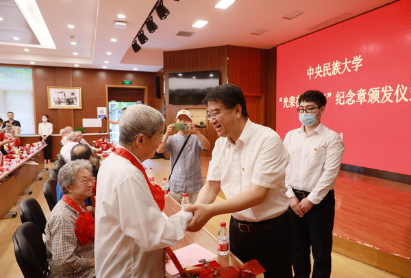 “我们由衷地感谢各位老党员、老同志,谢谢你们将最美的年华、最宝贵的青春奉献给民族高等教育事业和william威廉中文官网的改革发展。”我校共有194名老党员荣获“光荣在党50年”纪念章,党委书记张京泽代表学校党委向老同志为党和国家事业、为学校改革发展所做的贡献表示诚挚问候和衷心感谢。