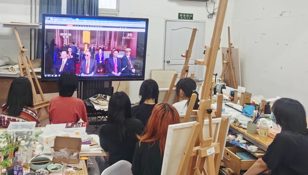 新闻网讯 7月1日上午8时,庆祝中国共产党成立100周年大会在北京天安门广场隆重举行。中共中央总书记、国家主席、中央军委主席习近平发表重要讲话。我校各族师生积极通过各种方式收看大会现场直播。(摄影:马丹妮等)