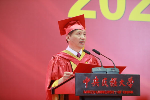 毕业研究生代表、民族学与社会学学院博士研究生郭宇坤在发言中深情回忆了六年硕博生活经历的“生命的拔节”、领导老师的严格要求与谆谆教诲、或“擦肩而过也好”或“交往至深也好”的同学之情以及绚烂多彩民大生活的温暖时光,号召毕业生们珍惜当下,抓住机遇,迎接挑战,将毕生所学奉献于祖国,将最美好的诗篇写在祖国的大地上。