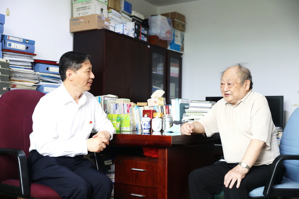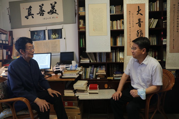 来到牟钟鉴先生家中,张京泽代表学校党委向先生表示亲切问候,高度评价和感谢他几十年来的辛勤耕耘及为党和学校事业作出的突出贡献,悉心询问先生身体状况、生活起居,并希望他在保重身体的同时,继续发挥老党员作用,为推动学校发展和培养青年教师成长贡献智慧和力量。张京泽表示,老党员们在立德树人和科学研究等方面都为年轻教师和干部树立了标杆,学校将继续用心用情做好各项服务保障工作。