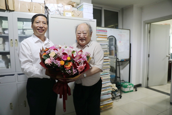 6月29日上午,党委副书记、校长郭广生来到荣誉资深教授戴庆厦办公室看望慰问。郭广生感谢戴庆厦先生多年来为民大发展所作的贡献,详细询问了戴庆厦先生的身体和生活情况,听取戴庆厦先生对学校事业发展的意见和建议。郭广生代表学校党委为戴庆厦先生送上鲜花,希望他好好保重身体,为学校改革和发展建设积极建言献策,发挥余热。