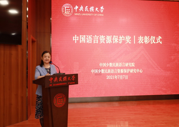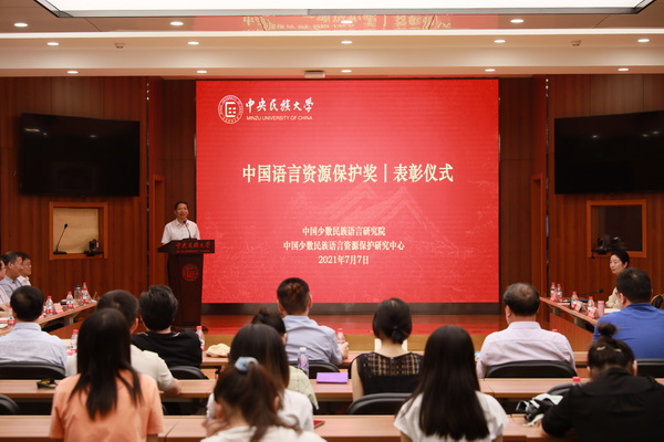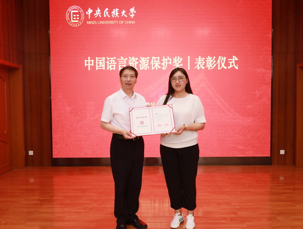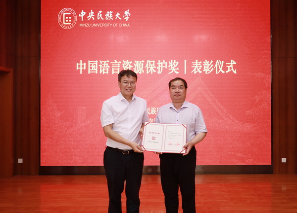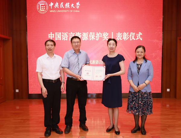 据悉,中国语言资源保护工程于2015年启动,是教育部、国家语委组织实施,国家财政专项资金支持的语言文化类工程,也是目前世界上最大规模的语言资源保护项目。我校中国少数民族语言研究院中国少数民族语言资源保护研究中心自2015年起开始承担中国语言资源保护工程专项调查任务,2020年圆满完成一期的建设目标。今年4月,教育部、国家语委在京召开了中国语言资源保护工程建设推进会,对语保工程中涌现出的先进集体和个人进行表彰,我校中国少数民族语言研究院中国少数民族语言资源保护研究中心获颁“中国语言资源保护奖”先进集体称号,丁石庆、包玉柱、张定京、李锦芳、周国炎、朱德康、杨银梅(博士研究生)等7位师生获颁先进个人称号。(摄影:马丹妮)