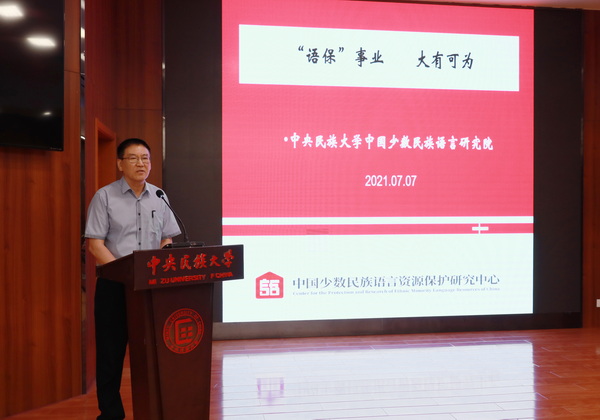 中国少数民族语言研究院教授、中国少数民族语言资源保护研究中心常务副主任丁石庆作了题为《语保事业、大有可为》的专题汇报。