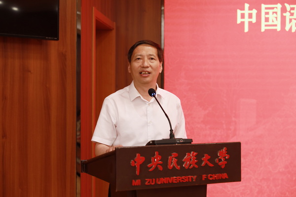 郭广生首先向教育部、国家民委多年以来对语保工程建设工作的支持表示衷心感谢,向获奖集体和个人表示热烈祝贺,向语保工程工作团队表达亲切慰问。他指出,“中国语言资源保护工程”是由教育部和国家语委立项、财政部专项经费支持实施的一项语言文化类国家工程。以其先进的理念、现代化技术手段,以及时代性与规范性等诸多特征有别于以往我国语言方言普查和语言文字使用情况调查,也是迄今为止世界上最大规模的语言文化资源保护项目。开展语保工程是贯彻落实中央关于大力推广和规范使用国家通用语言文字,科学保护各民族语言文字精神的重要举措。学校承担语保工程是服务国家战略、践行办学宗旨的重要体现。在向着全面建成社会主义现代化强国的第二个百年奋斗目标迈进之际,学校举行“中国语言资源保护奖”表彰仪式,总结和展示了语保工程阶段性成果,有利于进一步调动语言文字工作战线积极性,营造积极奋发、干事创业的氛围。郭广生表示,语保工程工作团队在语保工程中取得的成绩,彰显了学校办学使命和办学特色,体现了中国语言文学学科的深厚底蕴和学科优势,扩大了学术影响力、社会影响力和国际影响力,希望语保工程工作团队继续服务国家重大战略,在语保工程二期工作中取得更大成绩。