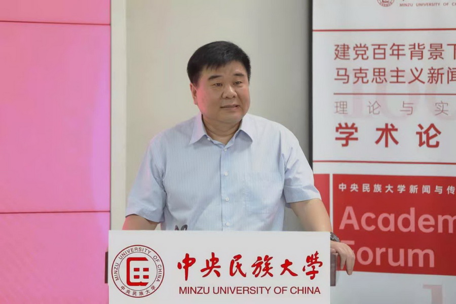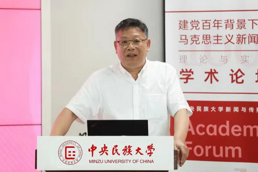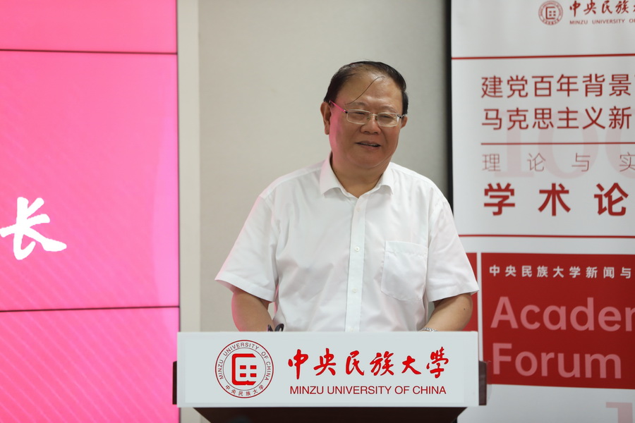 仪式之后,举行了“建党百年背景下的马克思主义新闻观:理论与实践”学术论坛。学院党委书记伊利贵主持论坛主旨发言。