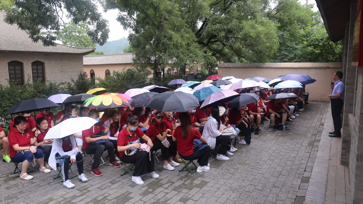 走进王家坪革命旧址,在雨中聆听《毛泽东与毛岸英特殊的父子情》现场教学,从毛泽东与毛岸英的家国父子情中,体悟革命先辈“舍小家为大家”,感受党领导解放区军民坚持抗战,最终取得抗日战争伟大胜利的信心与决心。