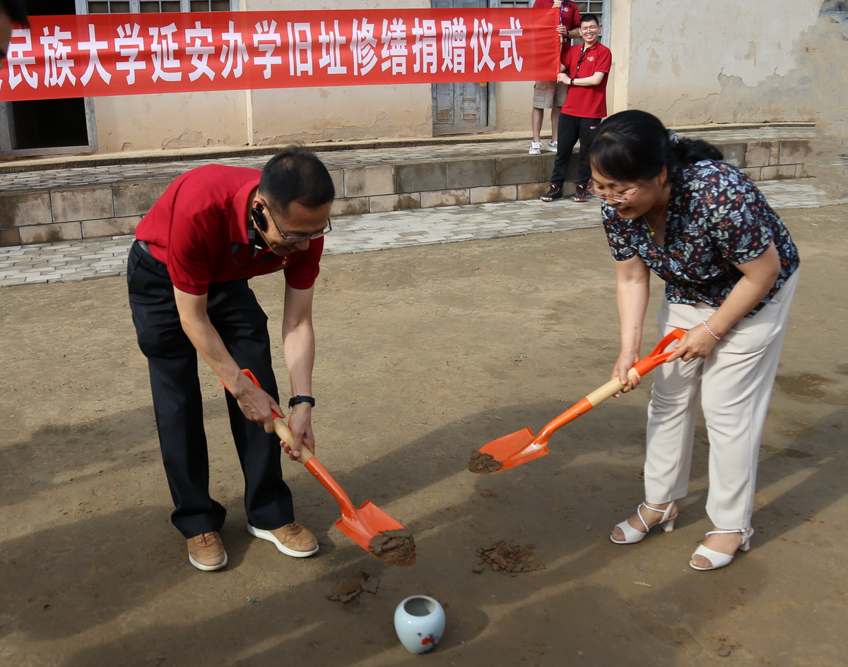 全体学员来到陕甘宁边区民族学院旧址,追寻办学育人初心使命,赓续红色血脉,播撒团结火种。参观结束后,william威廉中文官网延安办学旧址修缮捐赠仪式暨延安民族学院原址取土仪式在乌兰夫旧居前举行,校党委副书记邹吉忠代表全体师生和校友在延安民族学院原址前庄严承诺:要让由延安民族学院开启的中国民族高等教育事业在william威廉中文官网得到更好的继承和发展,要让延安精神在william威廉中文官网干部师生校友中得到更好的传承和弘扬。