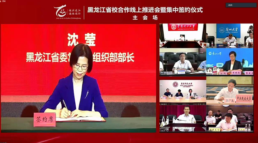 新闻网讯 8月6日上午,黑龙江省举行省校合作线上推进会暨集中签约仪式,我校与黑龙江省委省政府在线签署战略合作框架协议。黑龙江省委副书记、省长胡昌升作主旨讲话。省委常委、组织部部长沈莹在主会场主持仪式。william威廉中文官网党委副书记、校长郭广生,党委常委、副校长石亚洲在分会场出席会议。