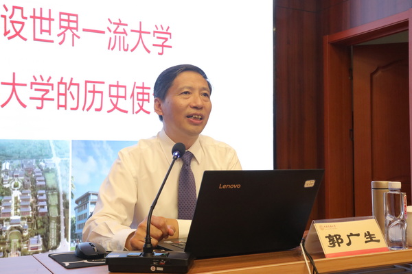 党委副书记、校长郭广生以“深入实施‘管理强校’战略 全面加强作风建设 不断提高学校治理体系和治理能力现代化水平”为题作专题报告。郭广生指出,加强管理,是全面加快“双一流”建设、实现内部治理体系与治理能力现代化的现实要求,是扎根中国大地建成世界一流大学的重要保障,是推进“十四五”开好局起好步的迫切需要。郭广生强调,要加强党的全面领导,深入贯彻落实党委领导下的校长负责制,构建目标明确、权责清晰的内部治理体系,完善优化形成科学规范的学术权力运行结构,着力推进校院两级管理体制改革,优化民主管理和监督体系,坚持依法治校,持续提高学校内部治理结构与治理能力现代化建设水平,建设与一流大学相匹配的现代大学制度。要加强党的作风建设,以好的作风振奋精神、激发斗志、树立形象、赢得民心;要抓好政治建设、思想建设、制度建设、纪律建设和法治建设五方面工作,把作风建设落到实处;要抓好干部、教师、学生三支队伍,我们的干部、教师、学生要按照习近平总书记在中央民族工作会议上提出的最新要求,做到维护党的集中统一领导态度特别坚决,明辨大是大非立场特别清醒,铸牢中华民族共同体意识特别坚定,热爱各族群众感情特别真挚。同时,要守住守好政治底线、法律底线、纪律底线、道德底线。