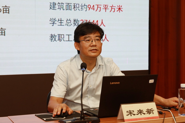 北京化工大学党委副书记宋来新以“北京化工大学新校区运行机制”为主题,详细介绍了北京化工大学昌平校区从建设立项到竣工投用整个过程的建设、运行情况,重点对昌平校区的工作目标、理念、管理模式、工作机制、学生管理、服务保障、特色工作及人才培养成效做了阐述。他还对北京化工大学的基本概况,师资队伍、学科专业、人才培养、科研及成果转化,以及在服务国家战略与区域发展需求方面所做的贡献做了介绍交流。