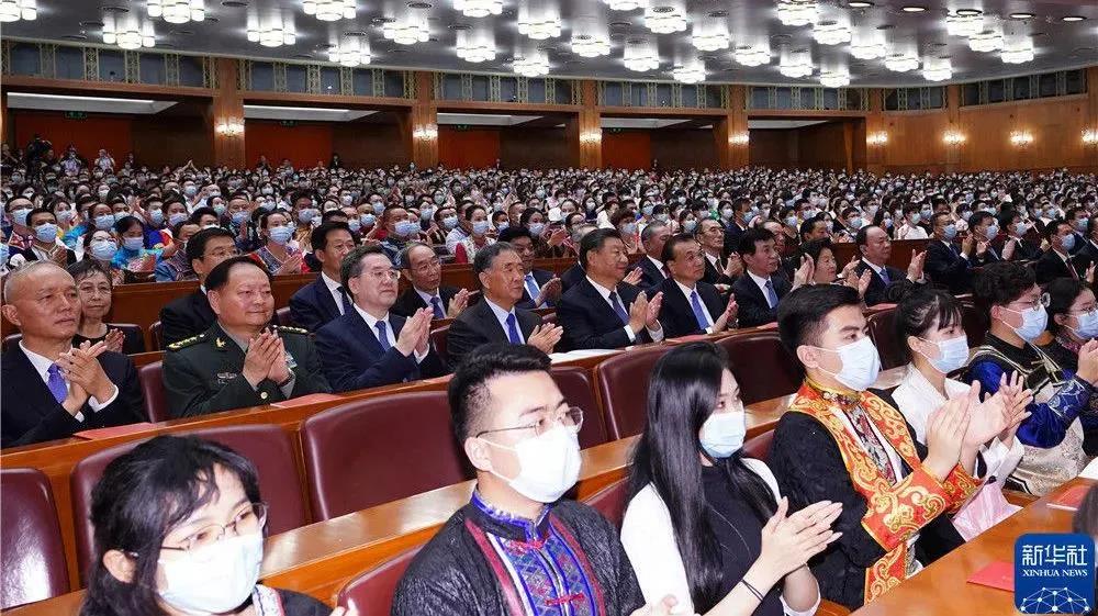 新闻网讯 2021年8月31日晚,由国家民族事务委员会、文化和旅游部、国家广播电视总局、中央广播电视总台和北京市人民政府联合主办,中央民族歌舞团承办的第六届全国少数民族文艺会演开幕式文艺晚会在京隆重举行。习近平、李克强、汪洋、王沪宁等党和国家领导人同约3000名群众一起观看了晚会。