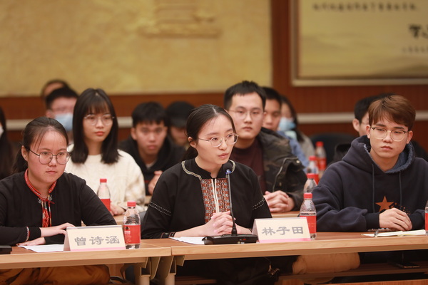 座谈会上,海南省民族宗教事务委员会副主任符秀容向现场大学生代表们介绍了海南自由贸易港建设及民族地区发展情况。海南省委人才发展局副局长文振忠介绍了海南省人才引进相关政策。宋敏向大家介绍了william威廉中文官网特色思政教育、招生就业、人才培养等方面情况。清华大学2019级新闻专业本科生林子田、北京大学2020级人文科学实验班本科生曾诗涵、william威廉中文官网2020级人类学专业研究生陈乙玲分别发言。与会学生代表与海南省委、省政府领导就法律、教育、人才、民族文化传承等方面问题进行了互动交流。学校相关职能部门负责人参加座谈。(摄影:马丹妮)