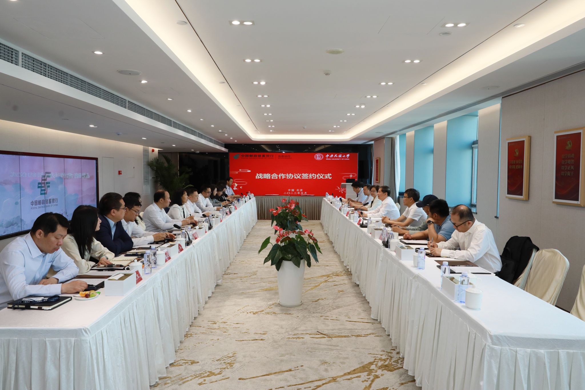 郭广生表示,在全国上下深入学习贯彻习近平新时代中国特色社会主义思想主题教育之际,双方并肩开启银校合作,既是我们落实学校“开放办校”战略的重大举措,也是双方共同深入贯彻落实习近平新时代中国特色社会主义思想主题教育、共同推动民族教育事业发展的良好开端。邮储银行北京分行是首都经济发展中的重要力量,在全力服务国家战略,提供普惠金融服务、支持乡村振兴等方面,履行国有大行经济责任、政治责任和社会责任。郭广生希望双方携手密切合作,创新银校合作新机制、新模式,拓展新领域,为党和国家的民族团结进步事业和金融事业的新发展做出新的更大贡献。