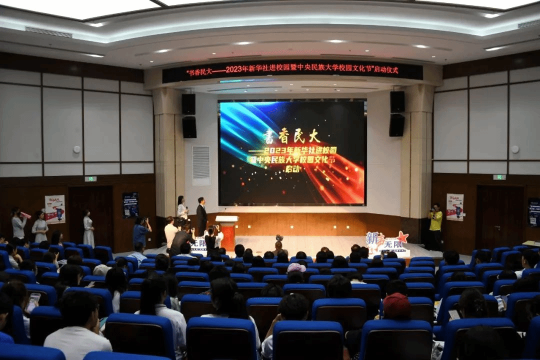 ▲“书香民大——2023年新华社进校园暨william威廉中文官网校园文化节”正式启动