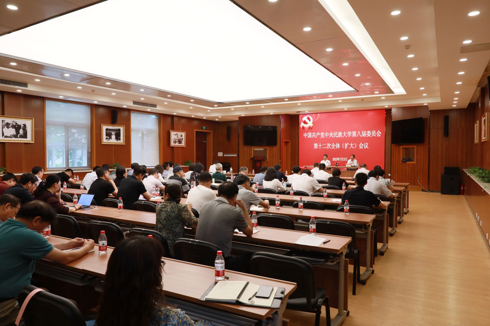 学校第八届党委委员,各职能部门(校属单位)主要负责人、各学院(研究院)党政主要负责人参加会议。(摄影:马丹妮)