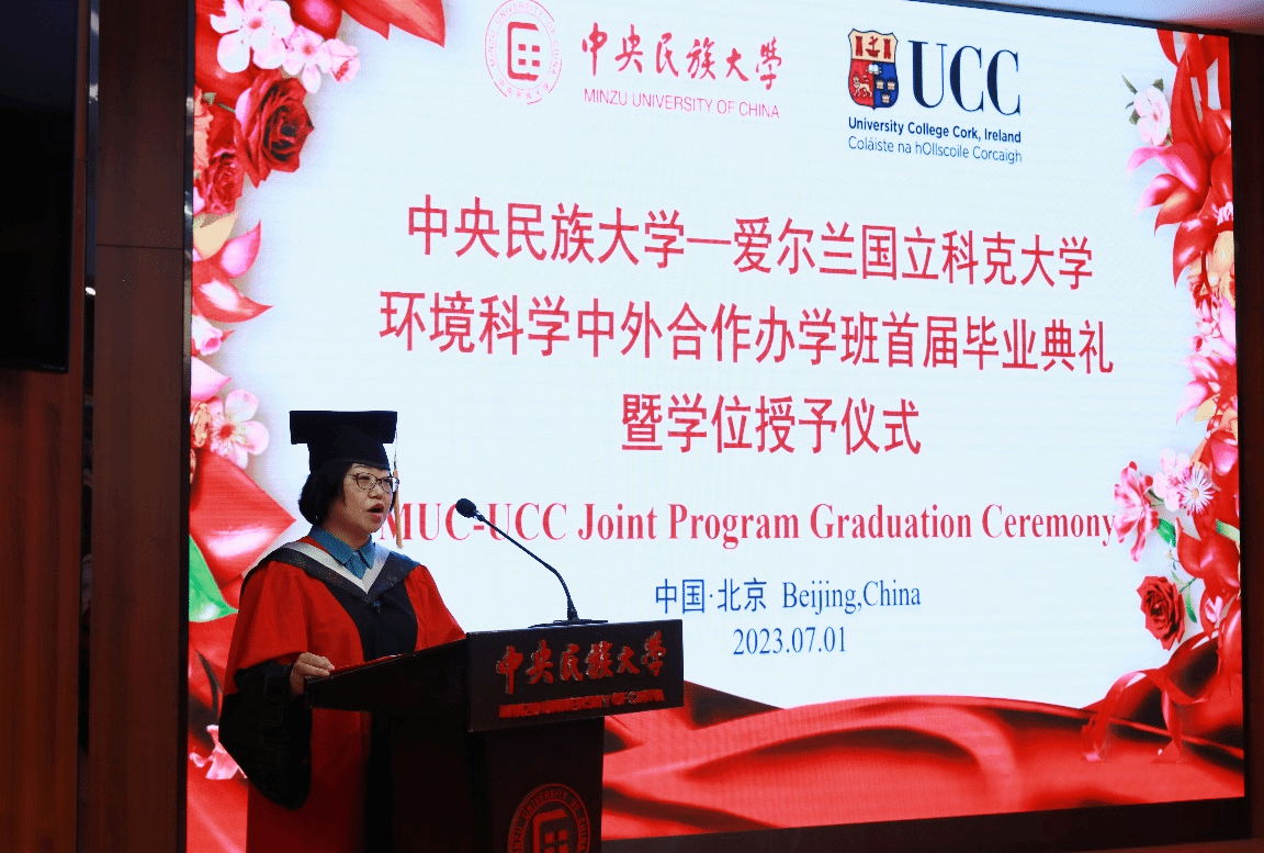 爱尔兰国立科克大学生物地球环境科学学院院长阿斯特力德·温勒在致辞中肯定了毕业生们克服重重困难,迎接突如其来的疫情挑战,高质量完成了学业,并鼓励同学们多多参与未来全球事务,一展所学。