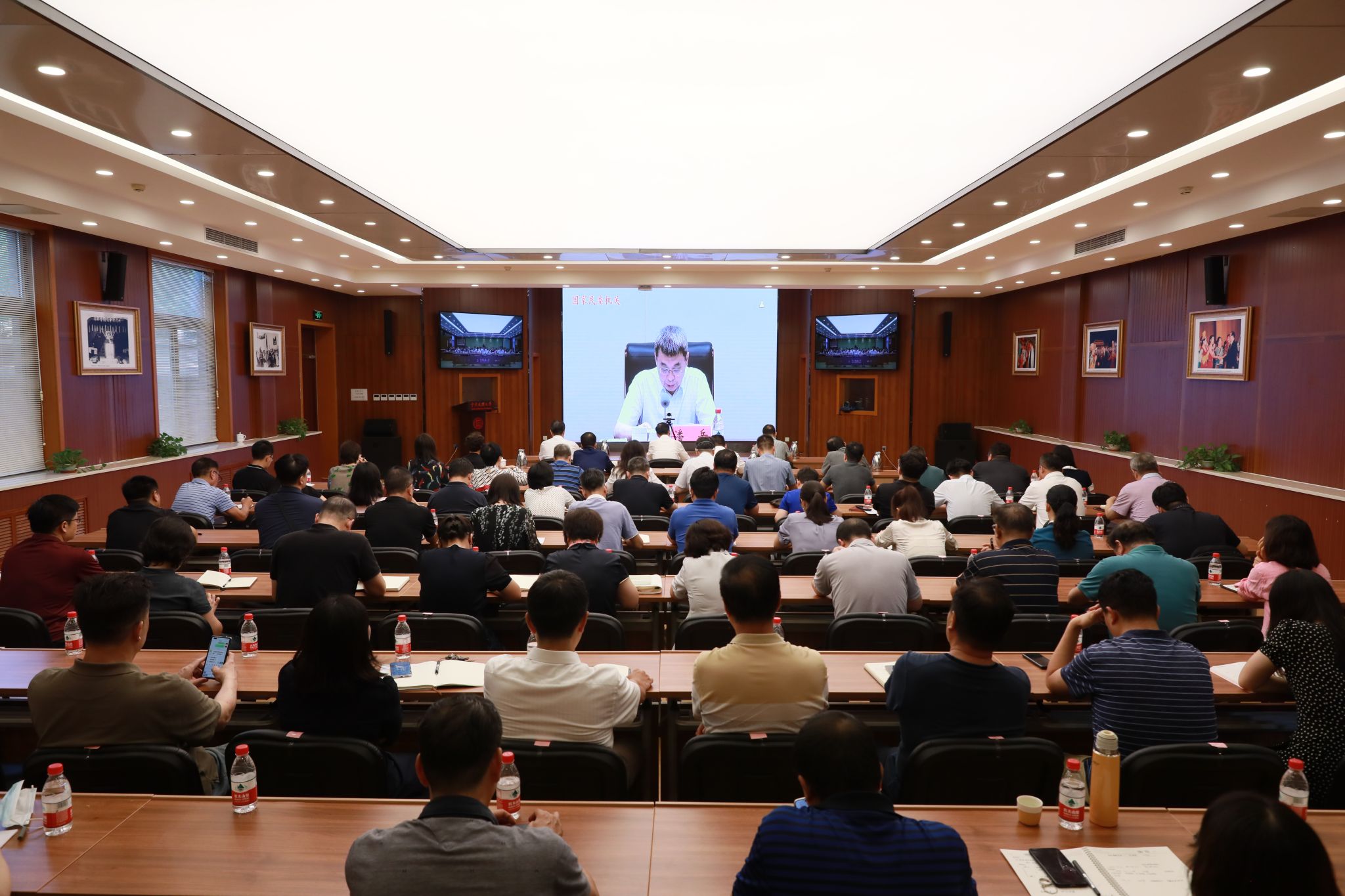 我校在校校领导,相关职能部门和二级单位负责人员在海淀校区知行堂参加会议。