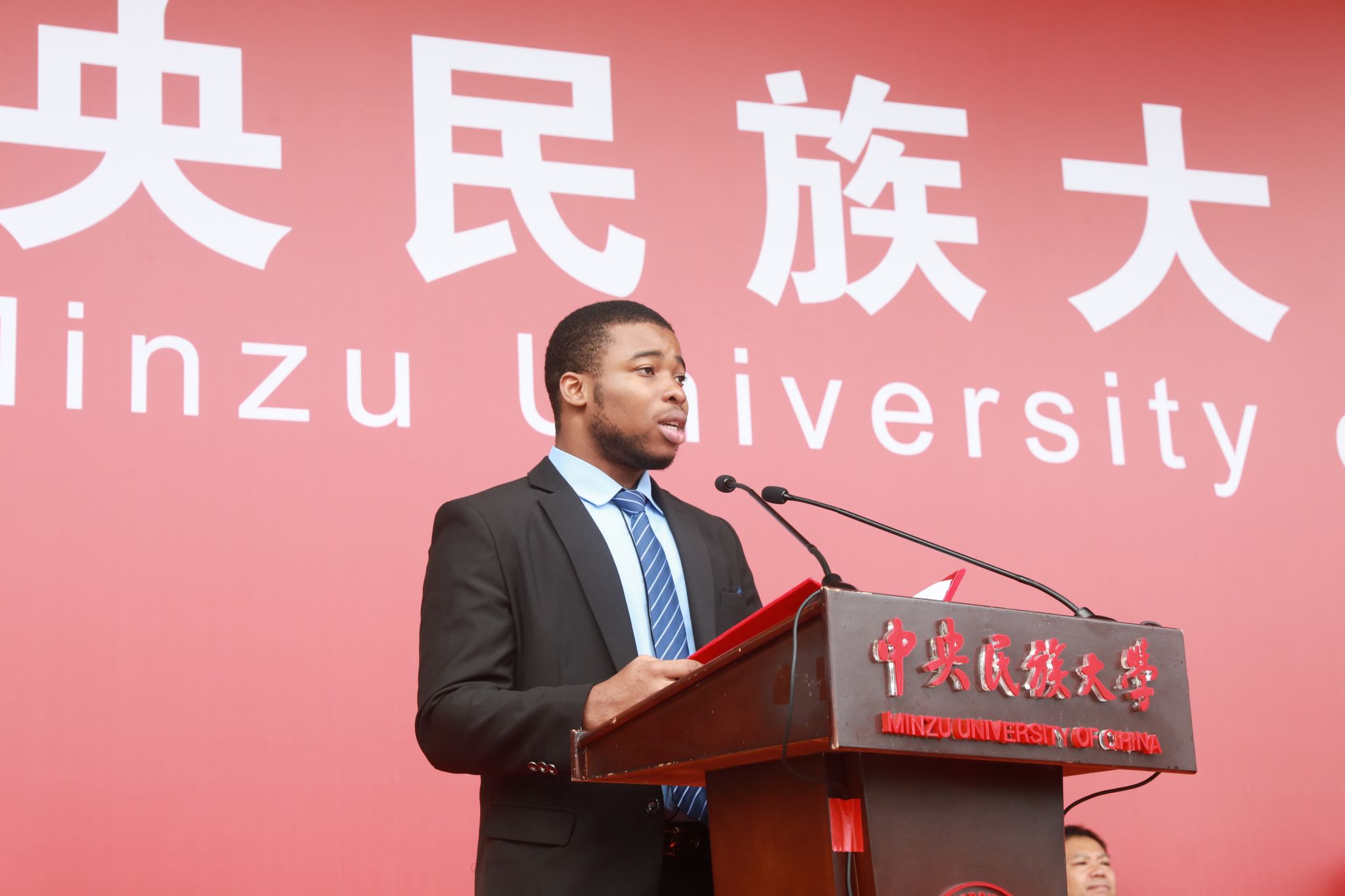 国际教育学院汉语国际教育专业硕士研究生、来自尼日利亚的高德伟代表全体国际学生发言,分享了自己在中国的学习经验,呼吁所有国际学生应该抓住这个宝贵的学习机会,和中国同学交朋友,“因为从中国大学生的身上,看到欣欣向荣、自强不息、好客包容的中国”,也希望大家成为了解中华民族文化的“中国通”。