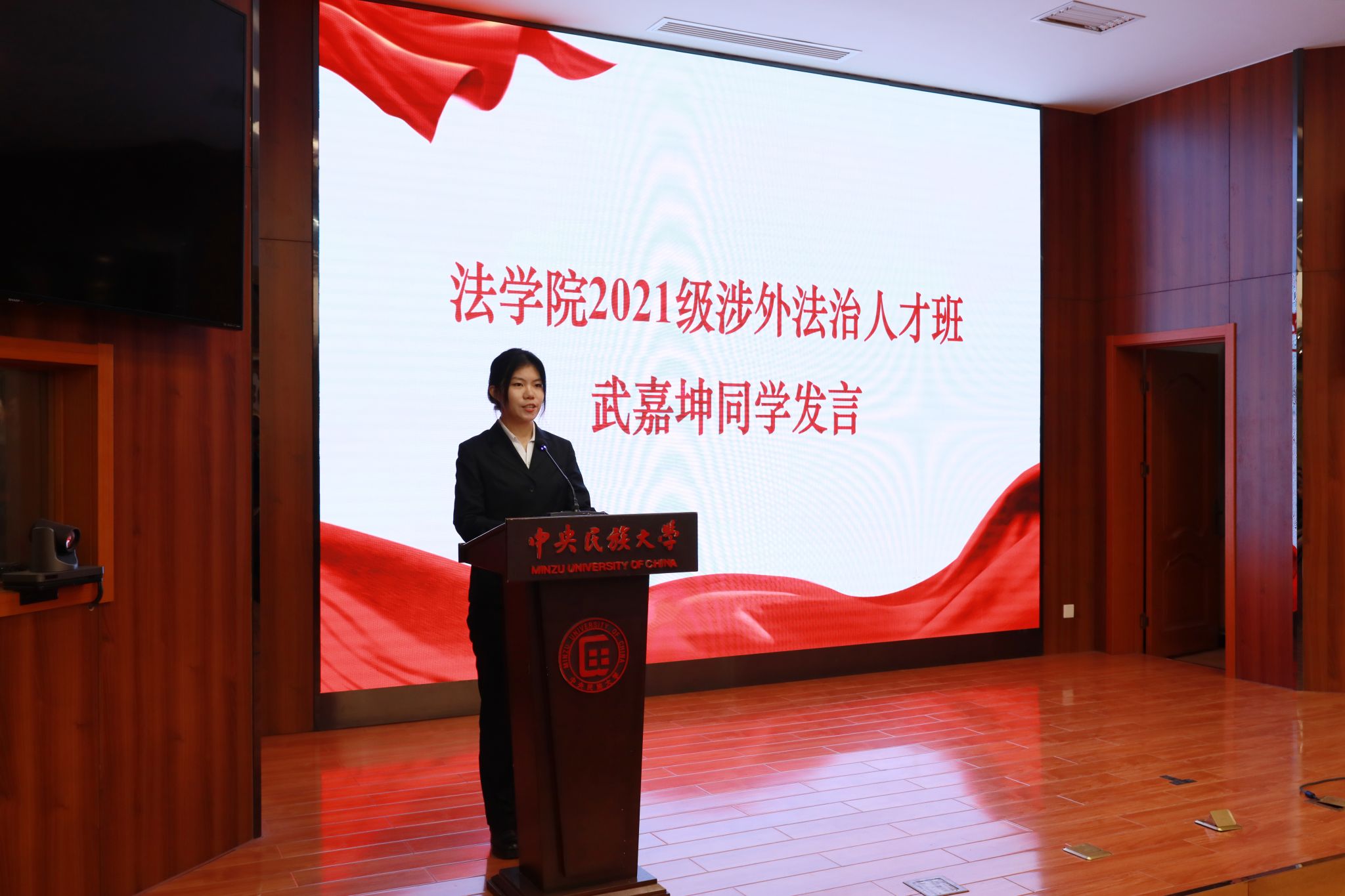 法学院2021级涉外法治人才班武嘉坤同学作为学生代表发言。