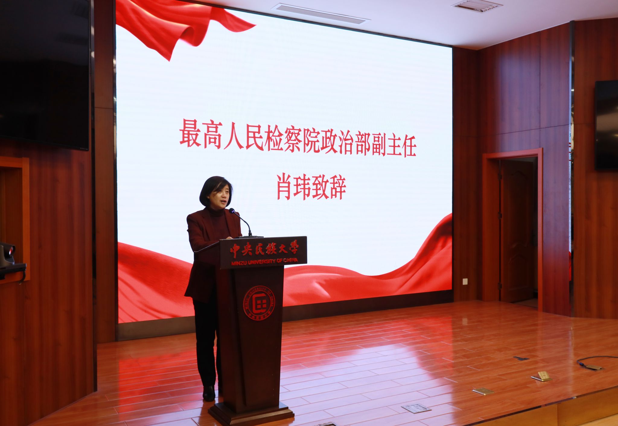 肖玮在致辞中介绍了最高人民检察院开展“检察实务专家进校园”活动情况。她表示,希望通过检察实务专家进校园活动,帮助同学们从法律文本走向法治实践,真正做到学以致用,知行合一,助力法学教育和法治人才培养,更好地服务新时代、新征程法治中国建设。