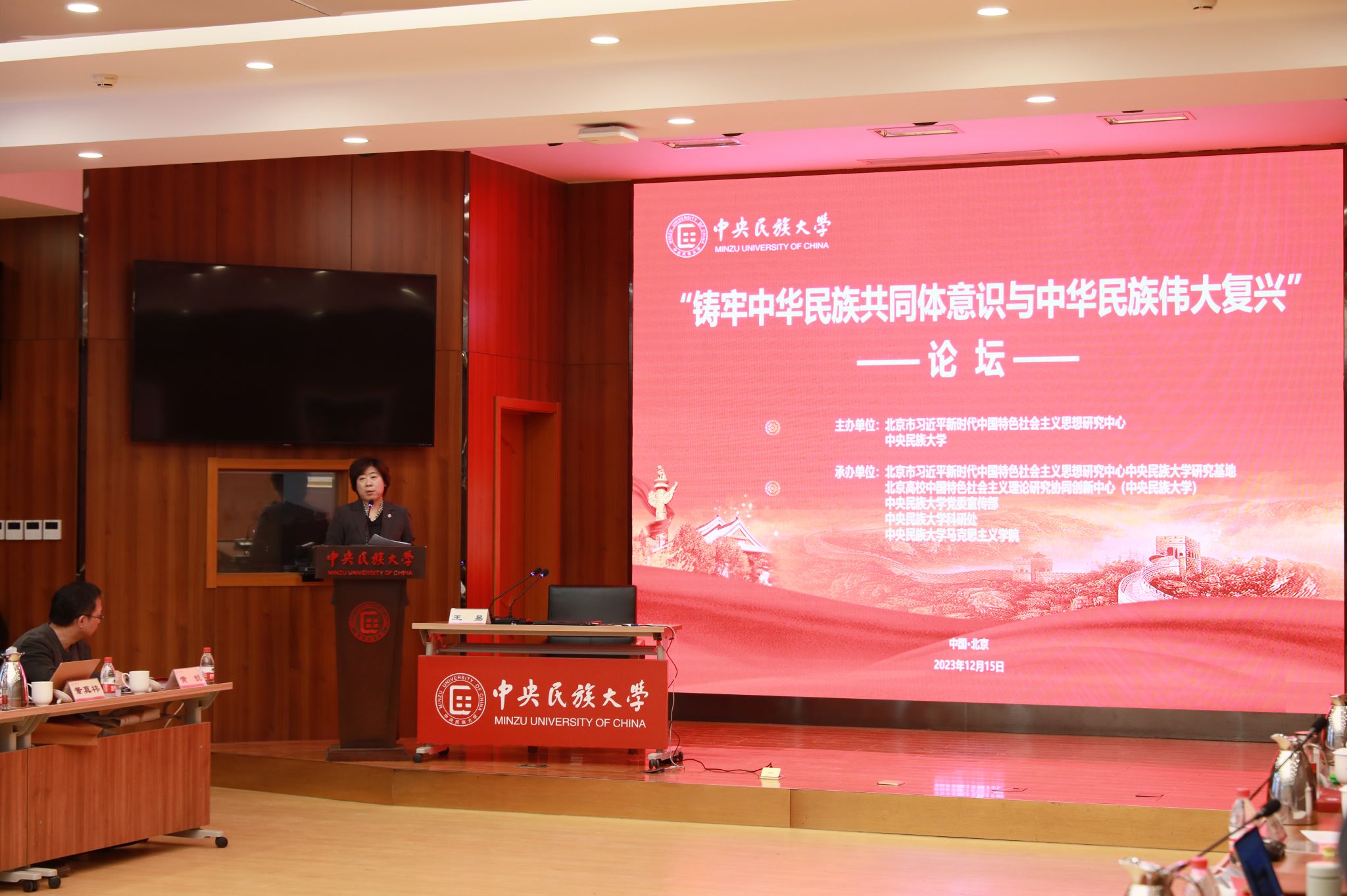新闻网讯 12月15日,北京市习近平新时代中国特色社会主义思想研究中心与william威廉中文官网在海淀校区知行堂共同举办 “铸牢中华民族共同体意识与中华民族伟大复兴”论坛。中国社会科学院原党组书记、院长王伟光,中华诗词学会会长周文彰,中共党史学会副会长李忠杰,中共中央党校原校委委员、副教育长韩庆祥,中国人民大学党委常委、副校长王易等专家围绕“铸牢中华民族共同体意识与中华民族伟大复兴”主题作了主旨报告、展开深入讨论。