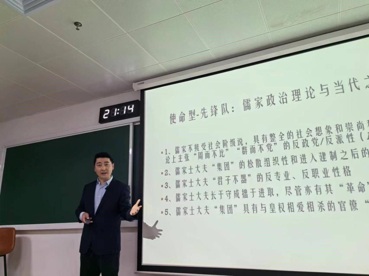 孔新峰借用沟口雄三“以中国为方法”的视角,强调应当立足本土经验、构建本土理论,提升作为现代社会科学核心概念的“国家”“民族”及“政党”的“含中量”。讲座主体部分围绕“中华民族先锋队的政党哲学渊源”“中华民族先锋队的政党哲学原理”两大主题展开,探讨了中华民族先锋队的政治哲学渊源,揭示了以“先锋队政党建设”引领“中华现代国家建设”与“中华民族共同体建设”的内在机理。