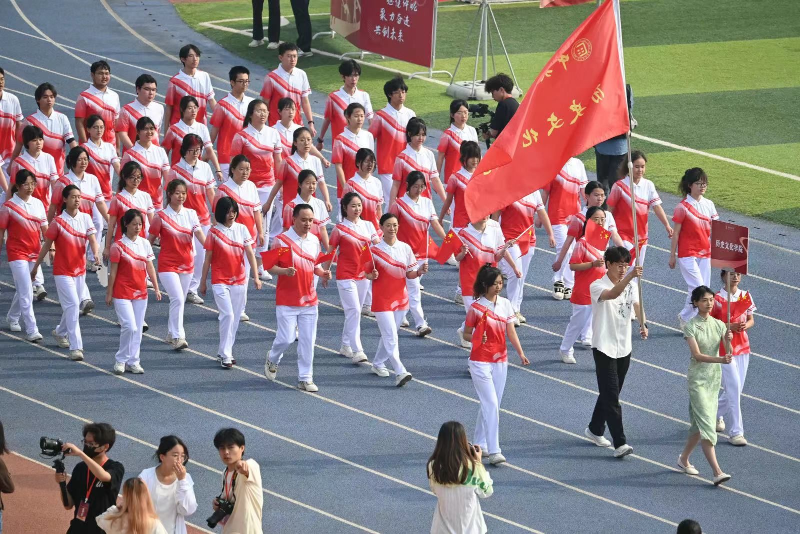 本届运动会的主题为“强健体魄 聚力奋进 共创未来”。在开幕式现场,国旗队、校旗队、红旗队、裁判员方队、各学院运动员代表方队、教职工运动员代表方队等各方阵依次入场。他们排着整齐的队伍,朝气蓬勃、昂首阔步、口号铿锵、意气风发地走过看台。“开弓搭腕并步抱拳”“春风得意正少年”,当音乐响起,国风舞蹈、八段锦、太极等精彩表演奏响了春日旋律,舞出了青春活力,更彰显了民大学子自觉铸牢中华民族共同体意识,传承与弘扬中华优秀传统文化的责任担当。