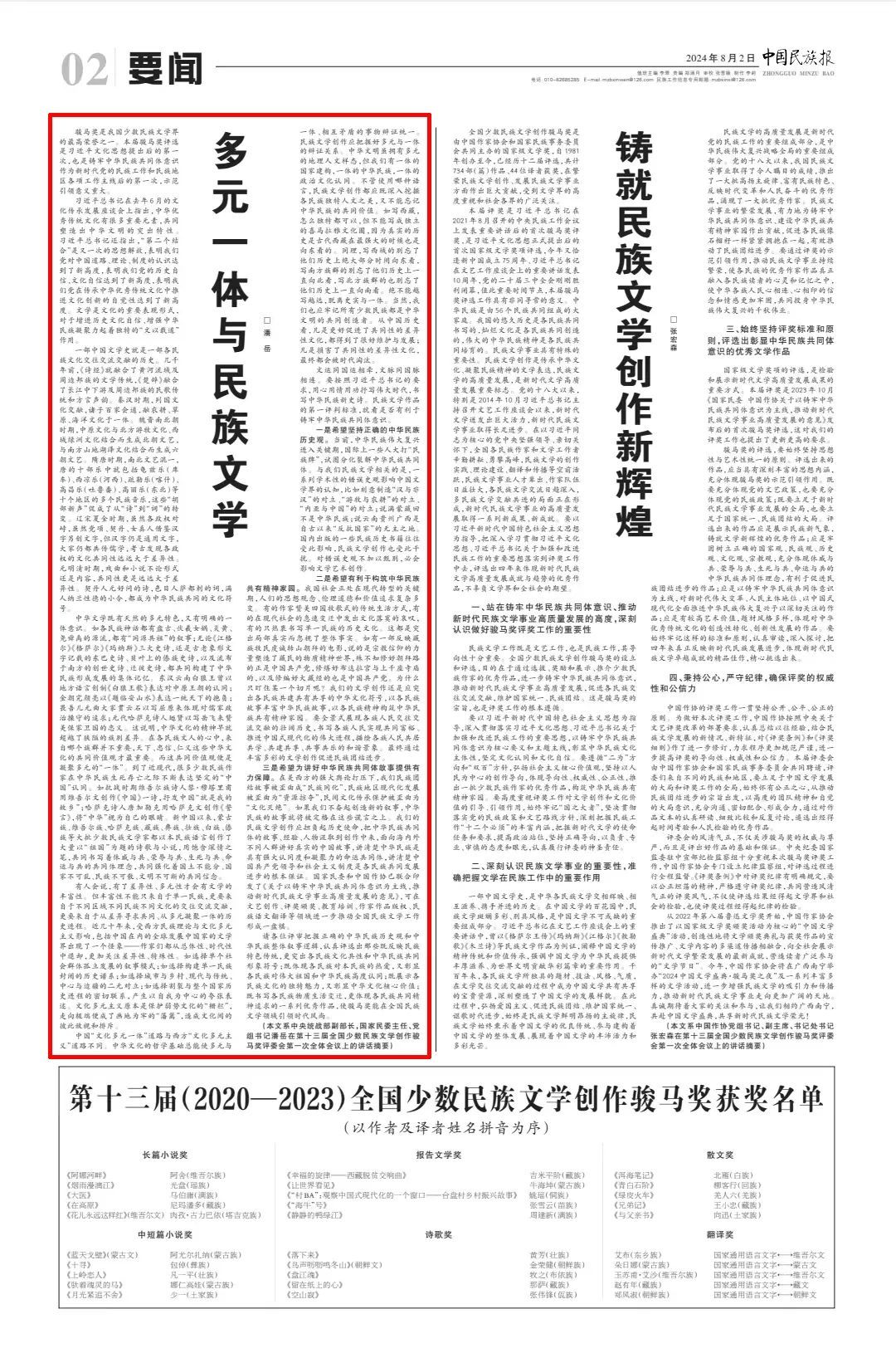 (本文系中央统战部副部长,国家民委主任、党组书记潘岳在第十三届全国少数民族文学创作骏马奖评委会第一次全体会议上的讲话摘要)