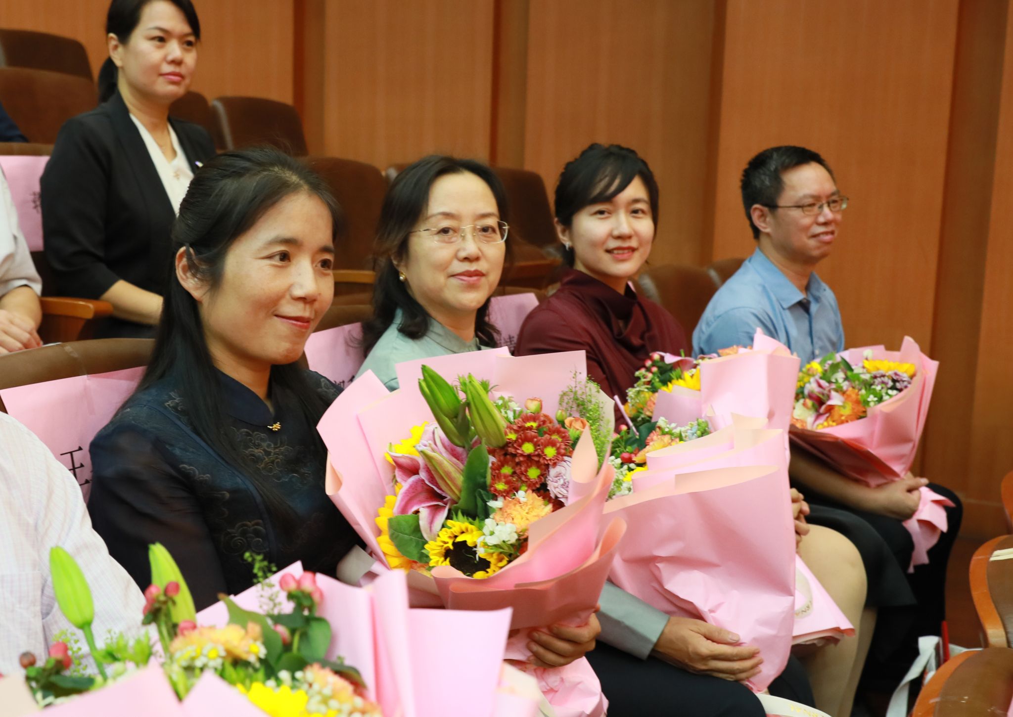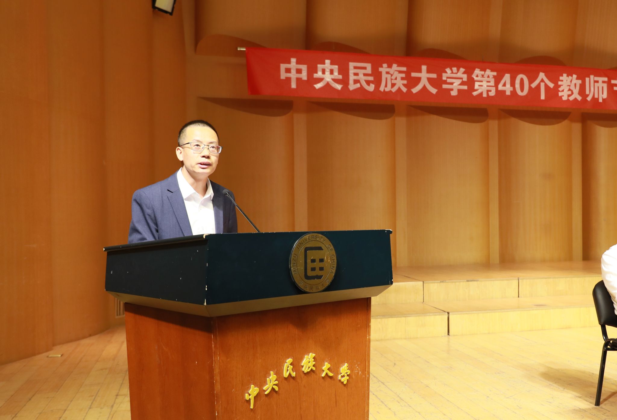 获奖教师代表、哲学与宗教学学院王海锋教授表示,要大力践行教育家精神,准确把握时代变革对大学教育的挑战,继承民大老教师的优良育人传统,做新时代的大学好老师。从事教育工作满30年教职工代表、信息工程学院赵小兵教授分享了自己从事教育工作满30年的感受,表示将不忘初衷、勤奋耕耘,继续为党的教育事业和学校新的腾飞贡献力量。美术学院学生第二党支部孙茜作为学生代表,向所有老师致以节日问候和祝福,畅谈了作为全国样板党支部坚守文艺为人民创作根本宗旨的生动实践,并表示将坚定不移听党话、跟党走,在推进强国建设、民族复兴伟业中展现青春作为、彰显青春风采、贡献青春力量。