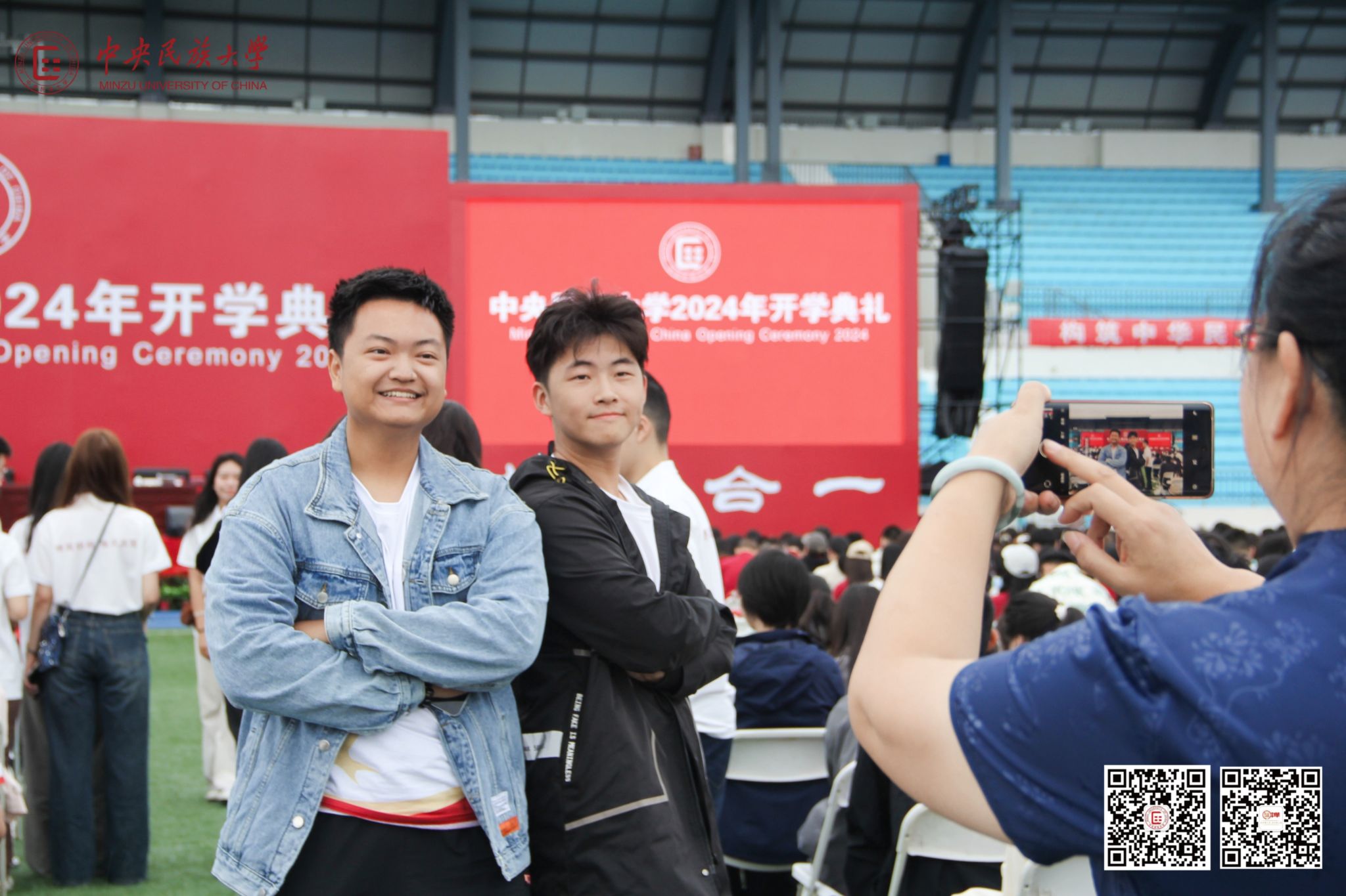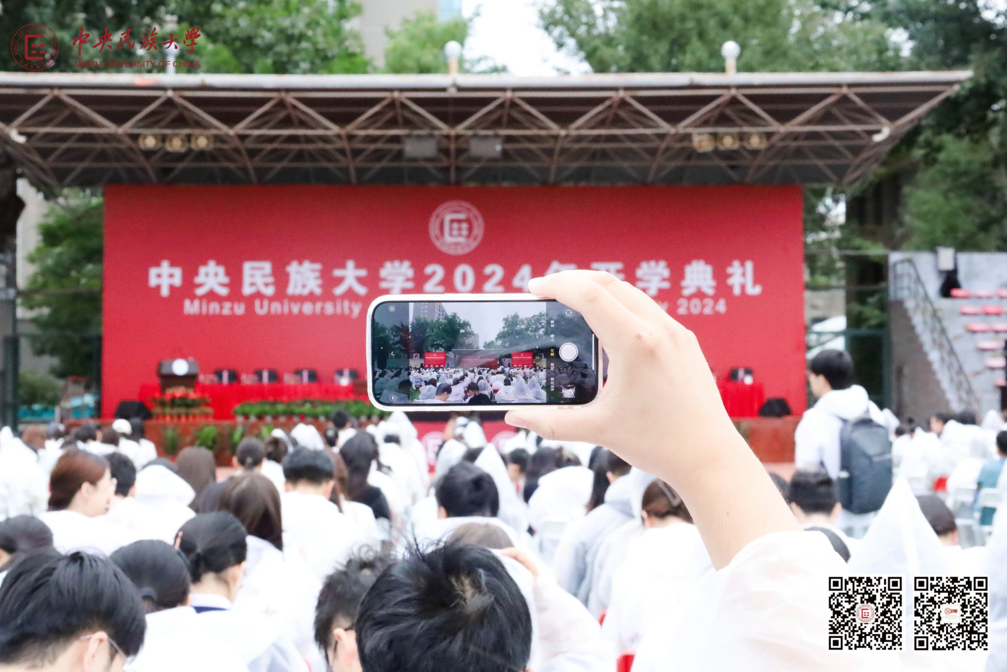 初秋微雨的民大校园,碧波椰林的海南校区,闪耀着自信光芒的“新民大人”汇聚一堂。开学典礼前,音乐学院同学奏响《草原图腾》,沉浸式演绎了各民族交往交流交融的生动场景。“请党放心,强国有我!”大学生艺术团群诵《奋斗的一代》,与新生共勉一代代民大人的精神追求。“舞”出圈的舞蹈学院姜铁红院长与学生一起豪迈共《奔腾》,举手投足间为新生注入“勇闯天涯”的青春斗志。